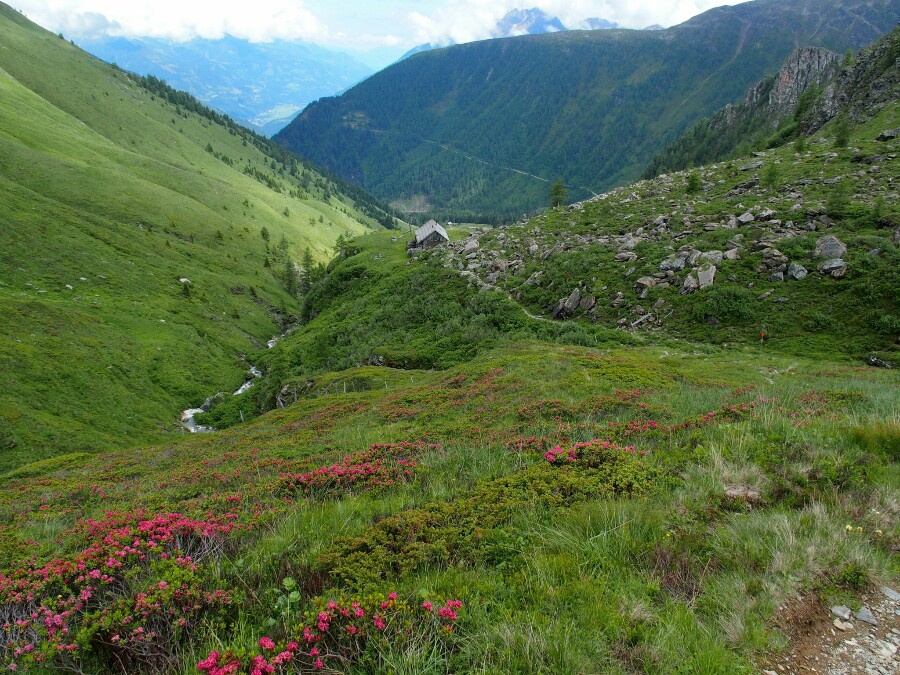 From this point it is going down to the hut, another 900m of altitude. It is only 2pm but I feel like it must be much later. It is nice to hike down with the guys and have a chat and some company. At around 4.30pm and a long hiking day finally arrive at the hut, the Fragranter Schutzhaus.