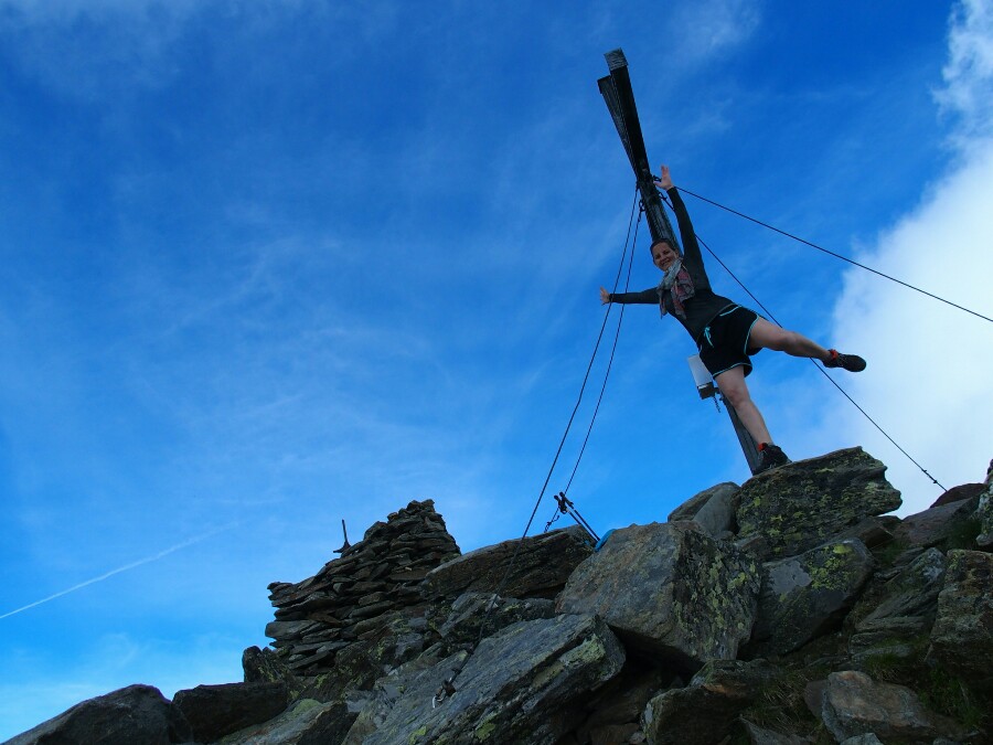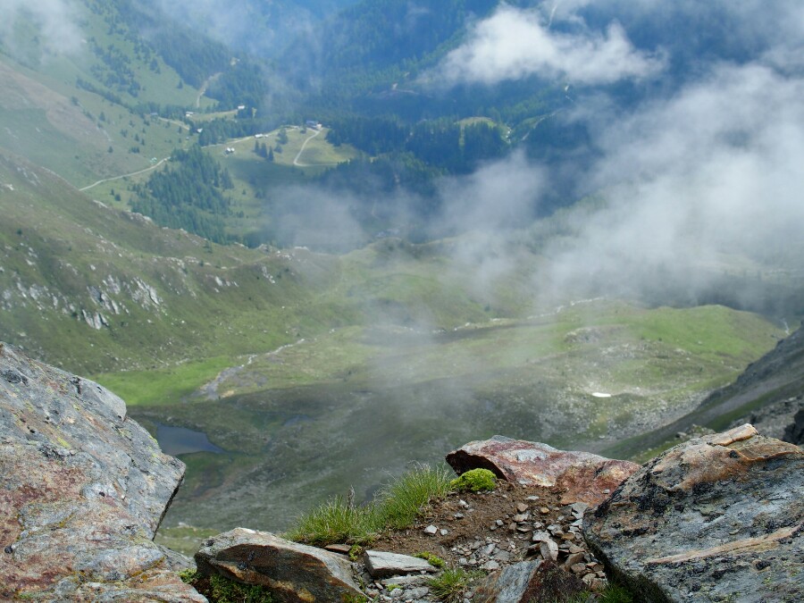 Finally I am at the Sadnig Scharte, from there another hour. But at least the trail is now partly climbing on rocks and more varied. I have to pay attention to the trail and forget a bit how hard it is for me this morning. Finally a last climb with arms and I am at the summit of the Sadnig! It feels great and although one side is cloudy I have a great view to the other side. I sit and enjoy for a while.