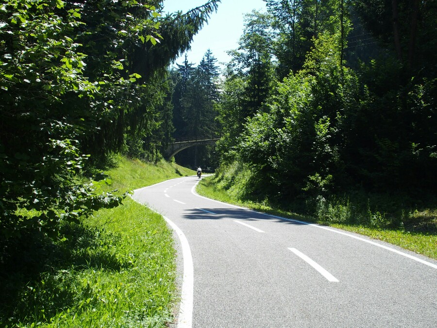 A steep way up and soon I am back on the Alpe Adria bike track for a few kilometers. The sun is burning and the cyclists are astonished about having a hiker sharing their road. Time for my first headache pill to be able to support this.