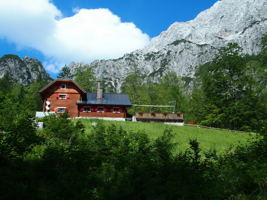 Time for another short break but as I am out of water I soon need to continue to the other side of the lake where a water source is indicated. It is actually a big parking space where even some people are camping. I offer myself an ice cream for relief from the hot sun and another pill against my headache. At least I know that I have only 90minutes of hike left to the hut, even though rather steep. It’s not that bad and even sooner I arrive at the nice Rifugio Zacchi. I am again the only guest today but things are not as easy as we have some language problems. In any case, a warm shower is included and as I am wet from sweating I take mine after some stretching and back exercise. Then I sit outside, enjoy the view and write my blog. The tenant tells me what is already mentioned in the guidebook, it will be very hard tomorrow to find the trail! Without the equipment he doesn’t recommend to take the via ferrata that is indicated as an alternative. At least the bad weather is only coming in after tomorrow, seems I can continue today, not sure what will happen then though because I have a few difficult days ahead and none is advised at bad weather. I just count on my luck as always!