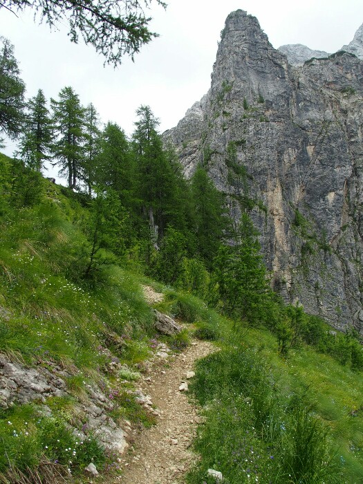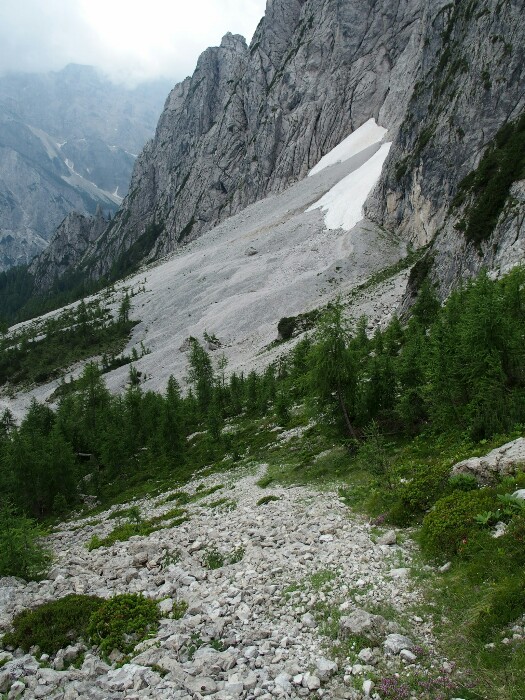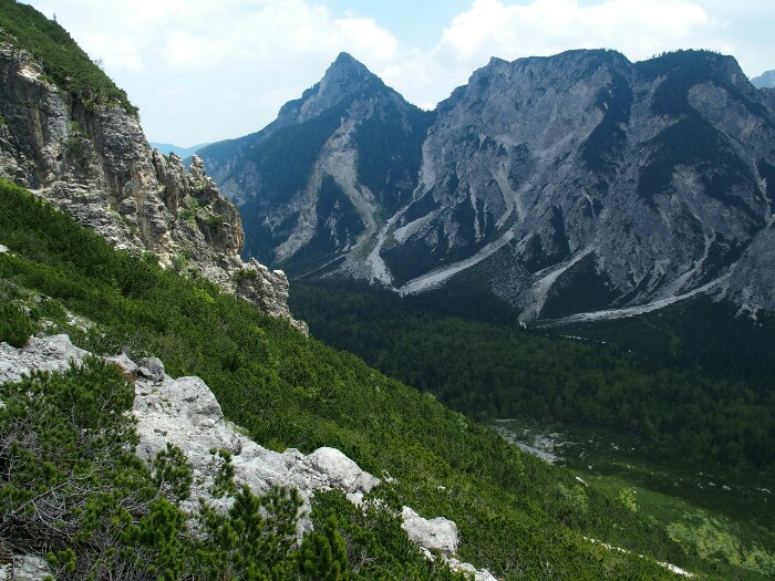 The first 90minutes are easy even though uphill. Once I reach the Porticina, the stony mountain saddle and border to Slovenia, I enjoy the nice view. The sky is cloudy and there is some wind. It seems the weather is really going to change.