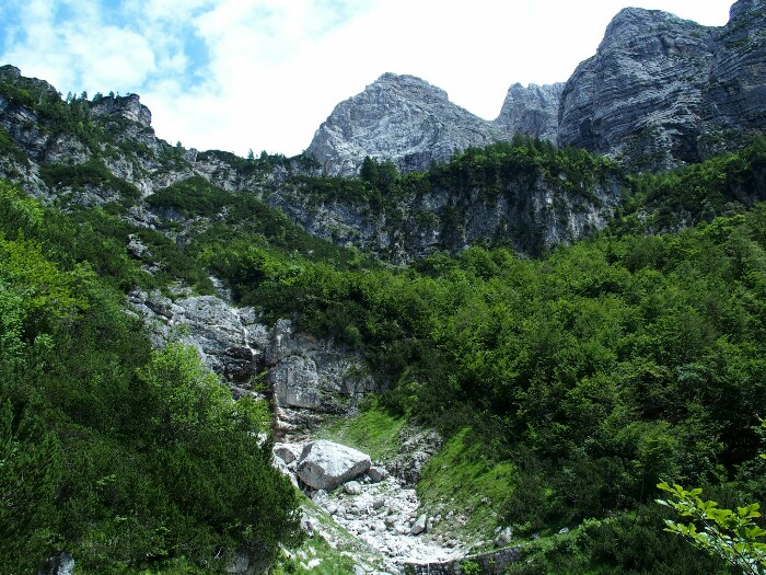 Very reliefed I start the hike up to the Pogačnikov hut, another 1500m altitude to go, but I don’t even mind the rain now. Luckily again it stops sooner than later and I enjoy the beautiful hike up and the great views on the Trenta valley.