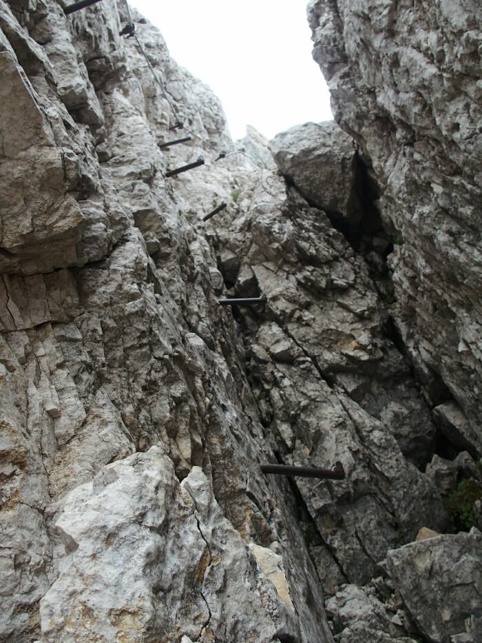 Day 20. Breakfast at 6.30am and before 7am I already leave the hut. Yesterday I was advised that it’s well possible to do the Triglav (the highest mountain in Slovenia and pretty famous here) via the Bamberger Weg. The weather looks much more stable even though there are a lot of clouds and wind. At first a short hike up to a pass, then it is 700 metres altitude down on a stony part. Then again 300 metres up in a very windy section. There are a few other people going up and it feels nice to know someone is around.