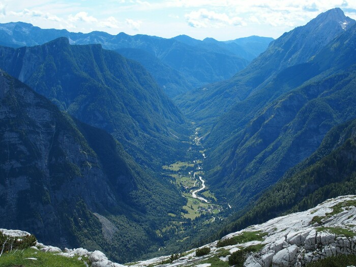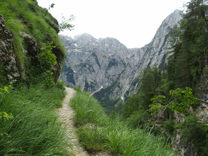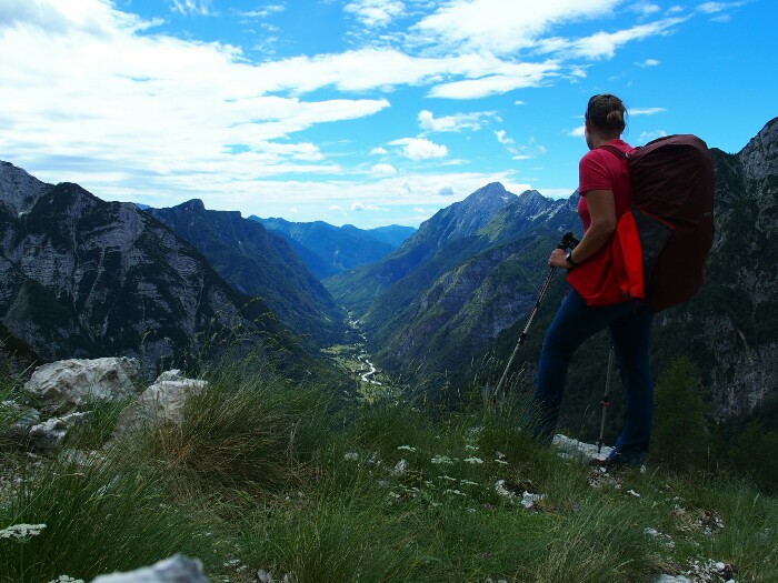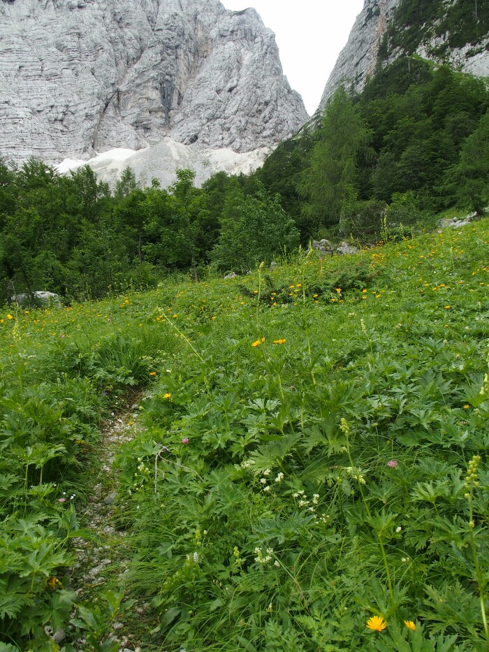 Very reliefed I start the hike up to the Pogačnikov hut, another 1500m altitude to go, but I don’t even mind the rain now. Luckily again it stops sooner than later and I enjoy the beautiful hike up and the great views on the Trenta valley.