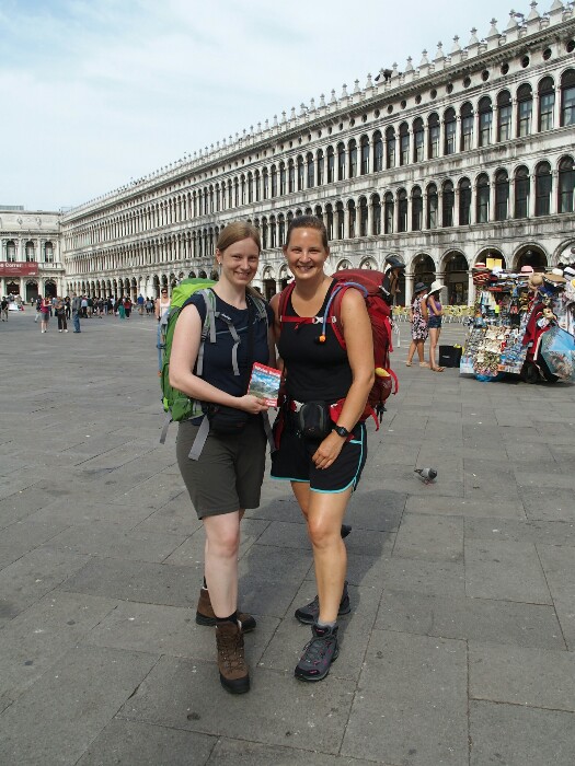 Day 1. The day starts late, my sister Claudia needs to recover from her job and enjoy her breakfast in her nice albergo. A last walk through beautiful Venice to the famous Piazza Di San Marco, the starting point of the trail.