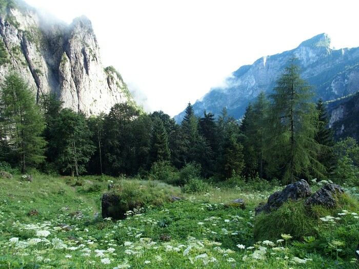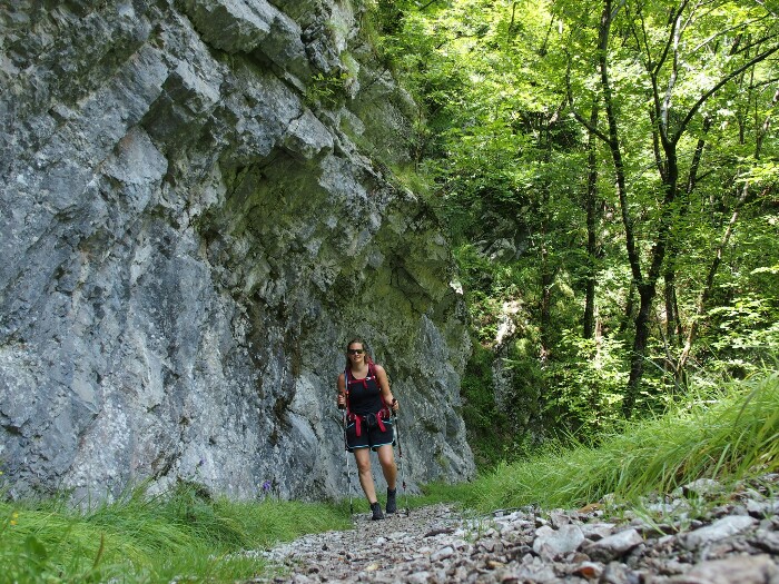 Past nine am I am starting to hike, first through a few small towns, right into the dark clouds. And 45minutes after I started, I already have to find a shelter from the thunderstorm. Half an hour later the rain is still heavy but no more thunder, so I continue in my rain clothes. Some more road hiking while the sun comes out again, until I get to a restaurant where plenty Italians are trying to dry their stuff. Just a toilet break for me, I am keen to continue to the hut to be safe from the weather. I am still thinking better today this bad weather than tomorrow but it feels as if this might take a couple of days to get really better. After the restaurant is a parking behind which the mountain trails are starting. It’s a very nice trail and soon I get to see the beautiful Dolomites! Wow, mountains I am so happy to be back! Plenty of Italians are coming down from the mountains and everyone is asking how far to the parking. (It’s not even noon yet so I am wondering why they are so keen to know!).