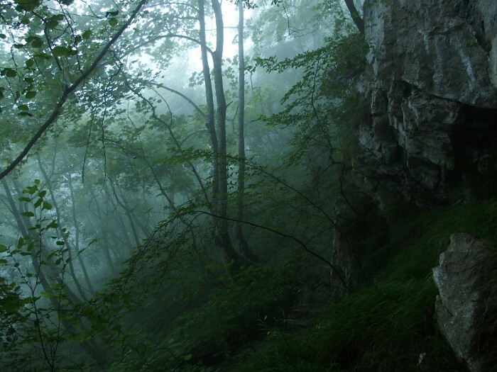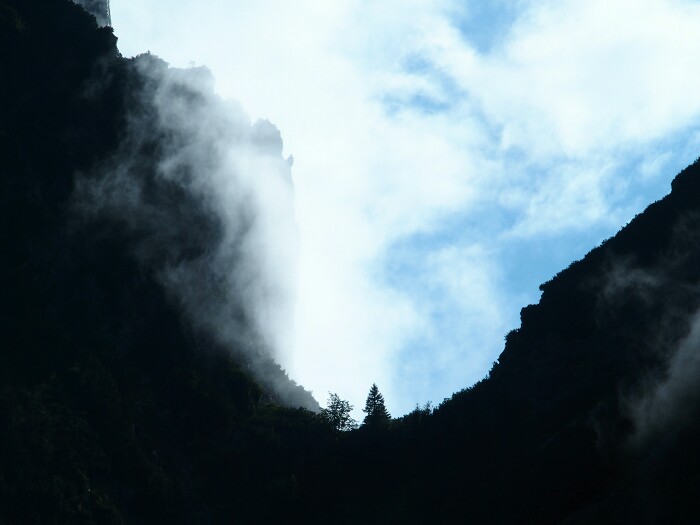 After the sun, the thunderstorm comes back and I find a place that provides at least a little shelter and have lunch. Then suddenly it’s getting really dark and foggy. A bit scary but I feel rather safe here.