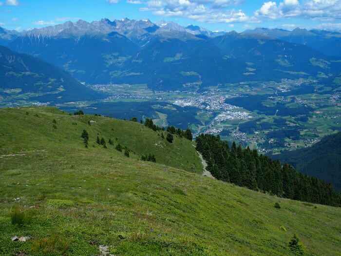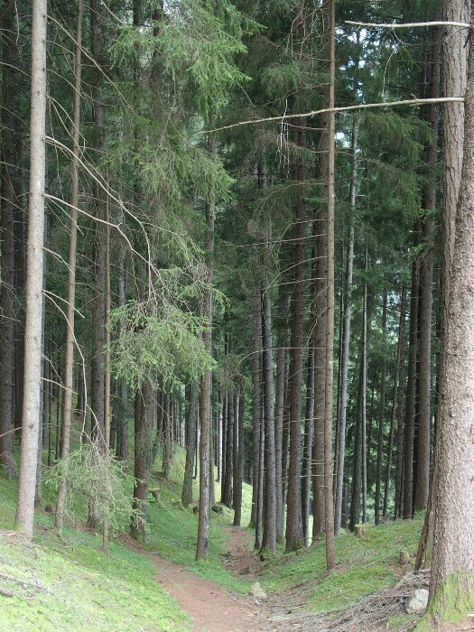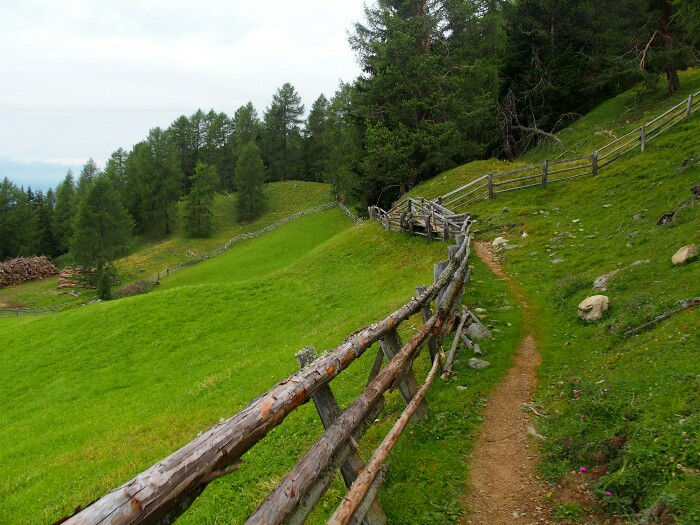 Can I really talk about breakfast again? Just mention that they have fresh cheese 😉 Otherwise I am not feeling much better, I am tired and have stomach issues, my right toe hurts when I am hiking and it is supposed to rain the whole day. So much ranting! Anyway, today we are just hiking down 1300m altitude through farmland and forests to the small town Niedervintl.