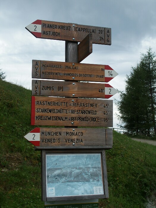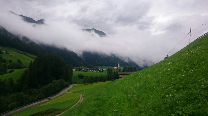 We enter the supermarket to shop lunch and snacks for the coming 7 days. When we leave it’s pouring and we take a coffee and tea at a close by bar. Alma, a girl we met at the Würzjoch who is also hiking the other direction, is joining us. It is her last day and she decides to take the bus. I am tempted but I want to hike every bit of the trail so Claudia and I set off for the last 10km uphill to Pfunders, a small village.