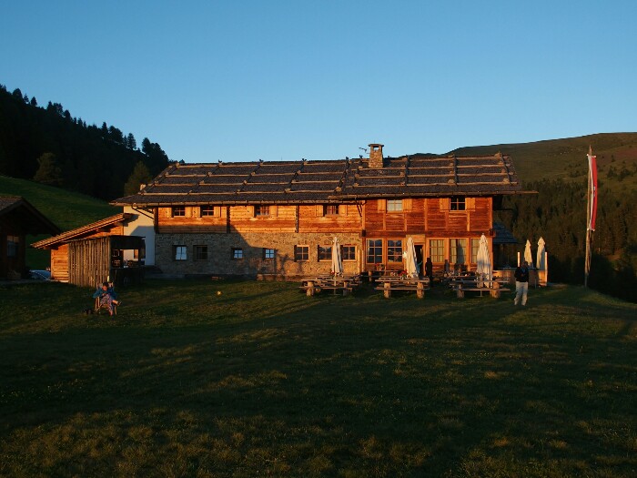 In the afternoon we arrive at the Kreuzwiesenalm, just in time before everything else arrives so we don’t have to queue as everyone else for the one and only shower/bathroom for 25 people of the dormitory. At least the mattresses are wide and we hope to be able to sleep tonight. I have the blues today, after 7 weeks of hiking and sleeping in huts, I am longing for home, my friends, some comfort and vegetables (we get salad but usually there are no cooked vegetables to eat!). The cake doesn’t really help to make me feel better but at least there is a good vegetable soup for dinner followed by a great cheese platter. I am tired but unable to sleep. Once everyone has settled in the dormitory it is surprisingly quiet, but again I cannot sleep.