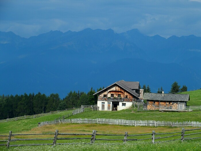 Can I really talk about breakfast again? Just mention that they have fresh cheese 😉 Otherwise I am not feeling much better, I am tired and have stomach issues, my right toe hurts when I am hiking and it is supposed to rain the whole day. So much ranting! Anyway, today we are just hiking down 1300m altitude through farmland and forests to the small town Niedervintl.