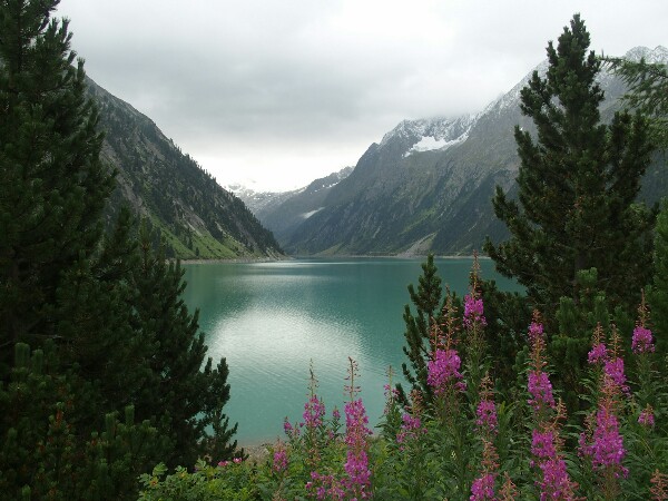 We were settled for a long hiking day, getting up at 6am. Once we are ready however it starts to snow. It was already foggy, but the difficult Friesenbergscharte with some ferrata sections cannot be done if wet (plus snow plus cold). Its a hard but the only viable decision for our level of skills and equipment. We quickly check the alternatives, as there is no other way to the other side of the mountains, we need to hike down to the artificial lake Schlegeisspeicher.