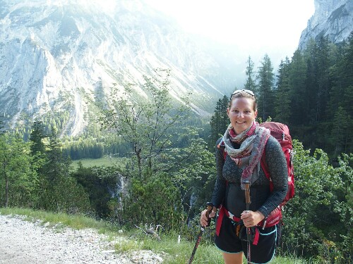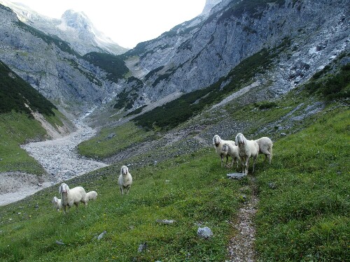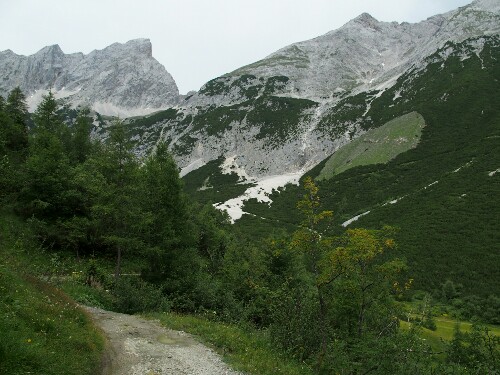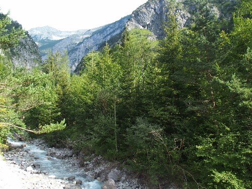 Although it’s will be a short day we have early breakfast at 7am as a thunderstorm is announced for the afternoon. Today we will hike from the valley at about 500m to the hut at 1700m via a 2000m high notch. First an hour road walk, then into the Karwendel.