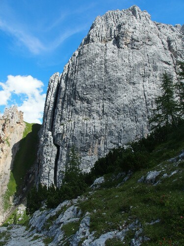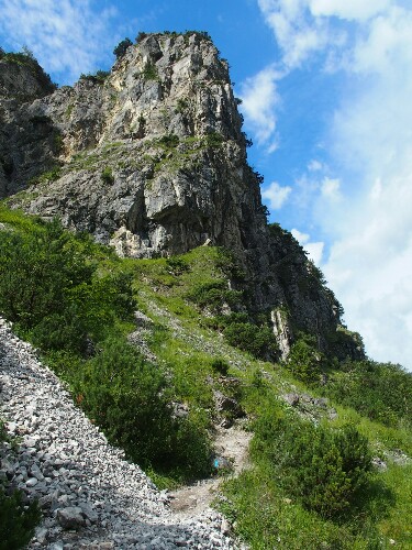 The region was formerly a salt mining area and a lot of closed mining huts and buildings along the way remind this time. It’s a beautiful day and the ascent is not too steep. Close to the notch it rains for not even half an hour.
