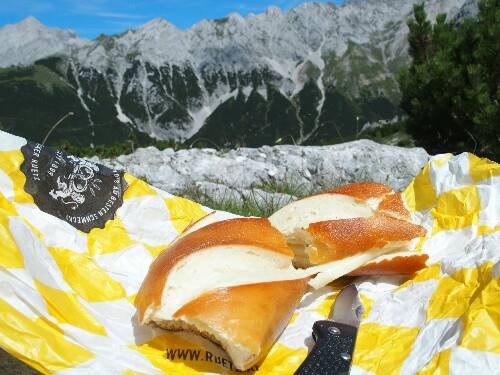 At noon we are finally up there and have lunch inside the biwack with two guys from Innsbruck. I ask them about life there as I am still thinking if I should move to the mountains and where. It seems it’s a young university town, for 130,000 inhabitants they have 30,000 students. We then leave our backpacks in the biwack and climb up another hundred meters of altitude to the summit, the Birkarspitze. The view is worth it, such a great panorama and we almost forget the pain of the ascent. I actually think it was one of the toughest days so far on my hiking trip.