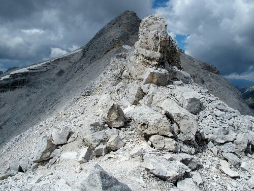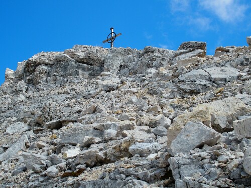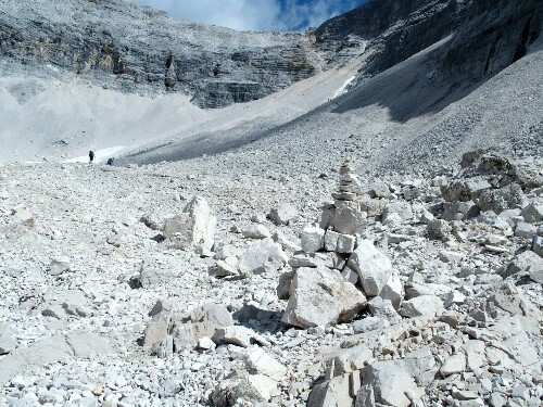 Then a turn into the next valley to go upwards for 1550m altitude. From easy it will become more challenging and finally exhausting as we climb up very steep Schotter and Geröll parts. For two steps up you glide one down.