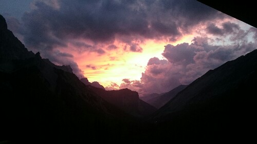 The tenants of the hut are very nice. We eat early (as always I am still hungry afterwards) and chat with some other hikers. Plenty will do the same tour as we tomorrow and are anxious about the weather and possible thunderstorms. We can get breakfast early at around 6.30am and as we are tired anyway we go to bed at 8pm. After some reading I sleep OK but wake up often due to the snorer next to us.