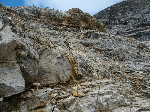 There are plenty of hikers around us and everyone is pretty exhausted and fighting their own way. It will be long hours until we make it to the last part, which is a ferrata climb up to the notch Schlauchkarsattel.