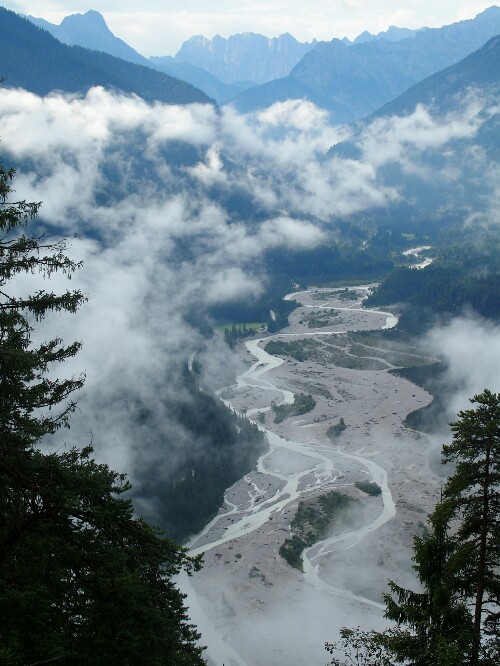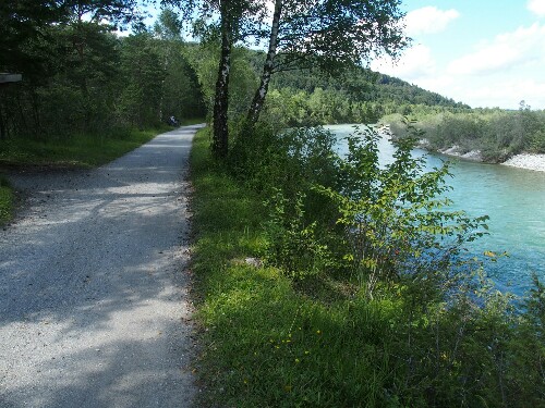 After arriving at the Brauneck, we have to go down though. The descent is bad for my knees and on the stony terrain I even fall down once. But finally this is done and we enjoy lunch at the river Isar before continuing another 10km to Bad Tölz, following always the river.
