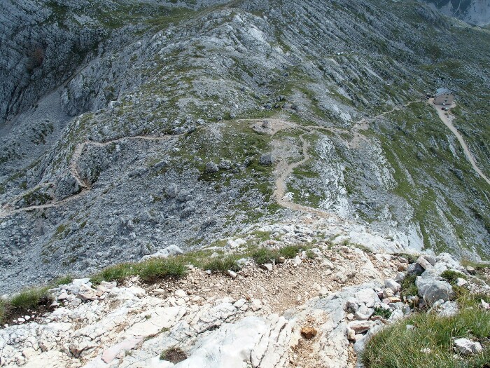 The hike is better the higher I am getting. From easy trail to rough mountains and after the hut it’s even easy climbing from time to time. I can see big clouds coming but I can’t hike faster. The very fast Italian is already coming back from the summit and is apparently happy that I am brave or strong enough to go to the summit “brava, brava”. If he knew that I haven’t done anything else besides hiking the last weeks he would have kicked my… for not being faster 😉