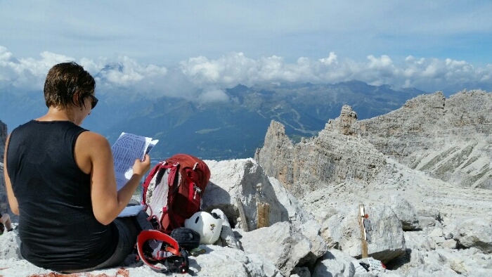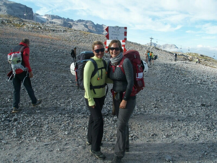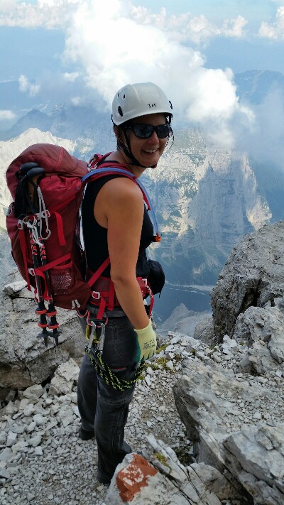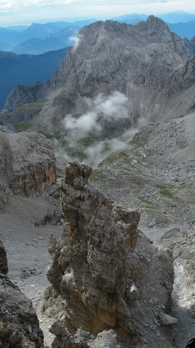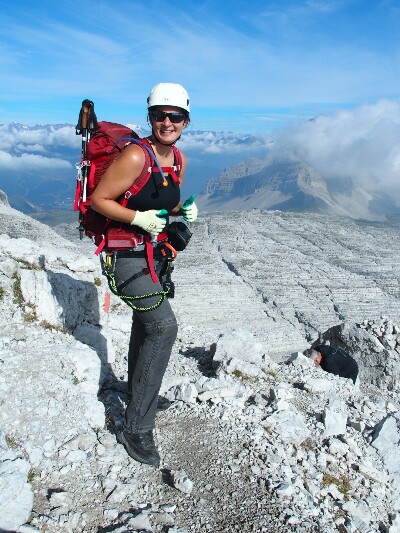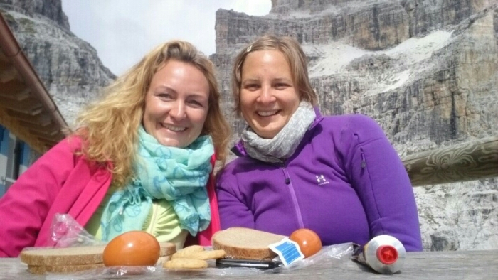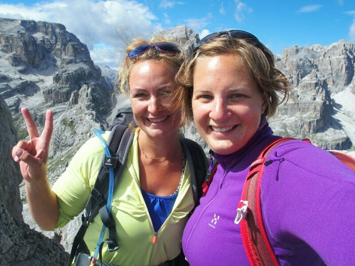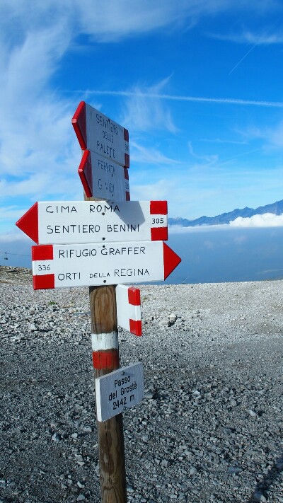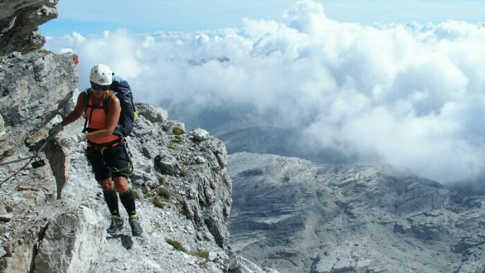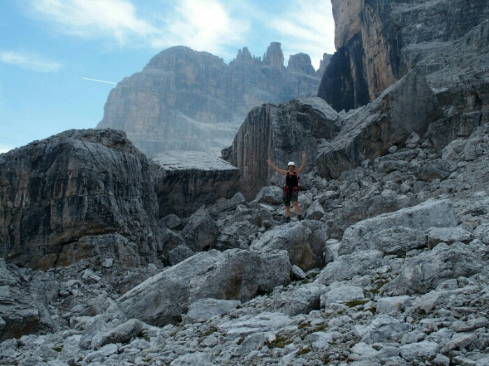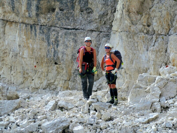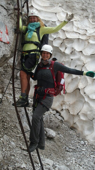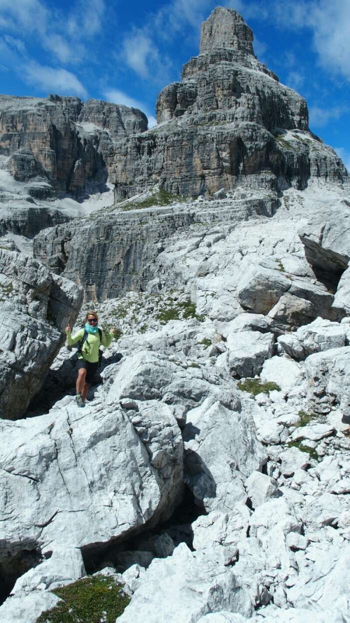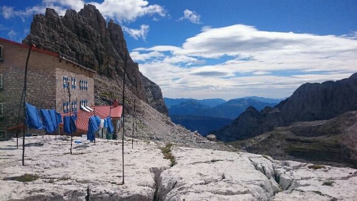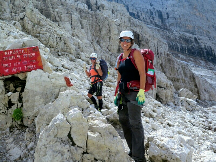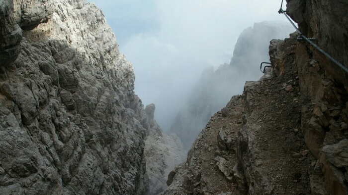 We are doing a B rated ferrata, the Sentiero SOSAT, to the Tuckett hut. It takes us about three hours and compared to yesterday it’s rather easy and short (besides some tricky parts) and includes lots of great hiking bits almost on the top of the mountain with great views.