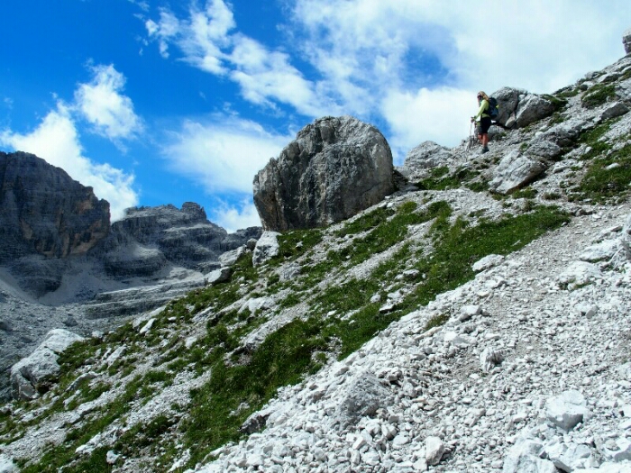 Once we are down on the other side we are now hiking up a rather easy trail to our hut, Rifugio Tosa Pedrotti.