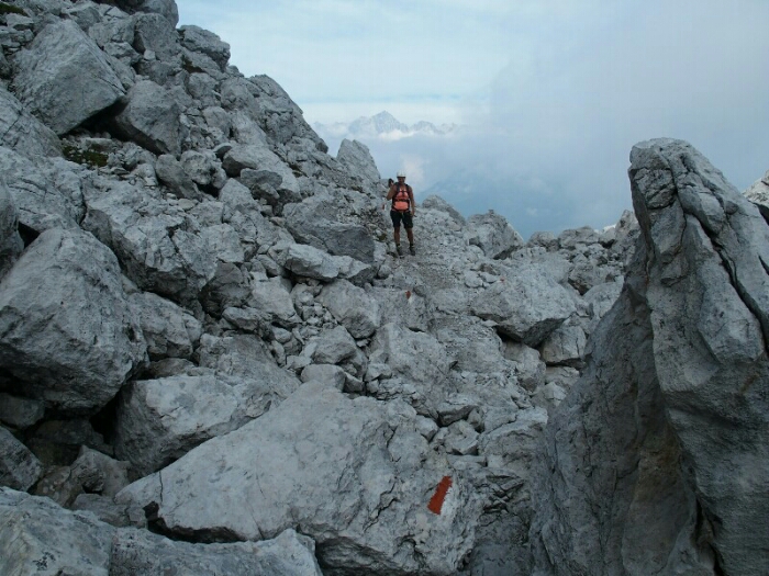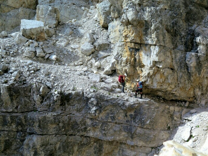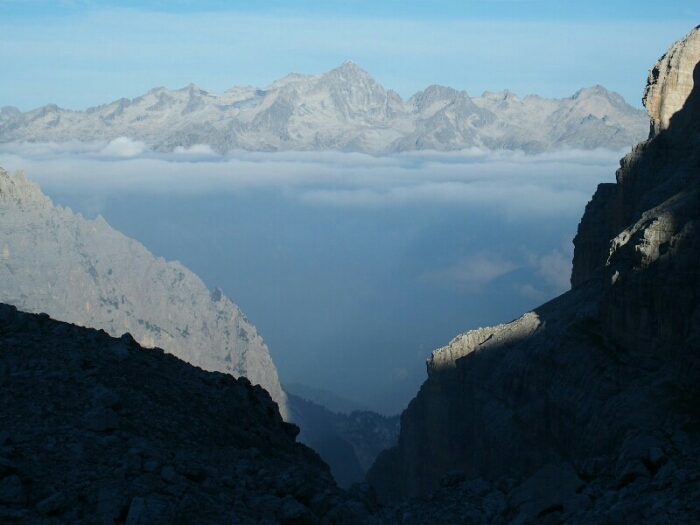 The way down is more climbing but well doable. Arriving at the notch Bocca del Tuckett it’s already after 1.30pm and the next section would still be 4h30. More for us probably.