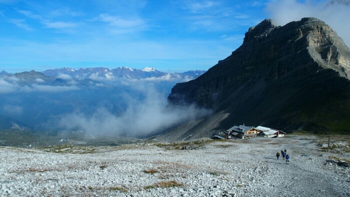 It’s 7.30pm as we reach the hut, after having started the hike and climb at 9am. The hut tenant was already waiting for us and we are sleeping in a nice 4 bed room. We don’t change or wash but directly go for dinner, completely exhausted. After dinner we collapse on our beds only to be disturbed by the 2 Italian guys who arrive just as we switched of the light and take hours to prepare for bed just to continue talking even after switching off the light. Well, another bad night for me as I can’t sleep much and already wish the night was over at 11.30pm. In the morning, after snoring all night, the Italian are just as impolite, switching on the light at 6.15am as they get up and take ages again to prepare. In the end we get up as well but take our time as we have to recover from yesterday and have a rather easy trip scheduled.