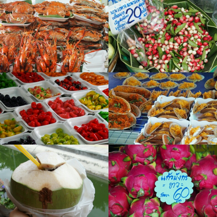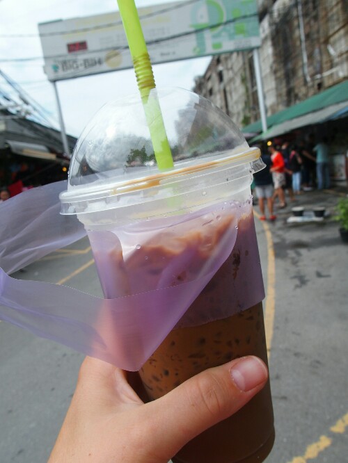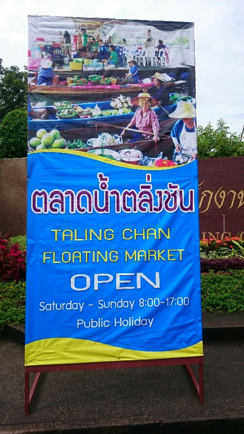 My Saturday turns out to become very busy. Not really feeling awake, I get a western latte macchiato with caramel (of course expensive compared to the other food prices here). But it’s good and I feel ready to take the bus to the Tangling Chan floating market. I was advised where bus 79 stops and at the hostel they wrote down the name in Thai. I show it to the driver and he tells me to have a seat. There’s a lady who comes around for the bus ticket and simply shows me the receipt where I can see the price (13 Bhat). When we arrive at the market the driver stops right in front of it to let me out (not a regular stop)… So lesson one for today is that taking a bus is easy as 1, 2, 3 and the people are very kind and helpful!
