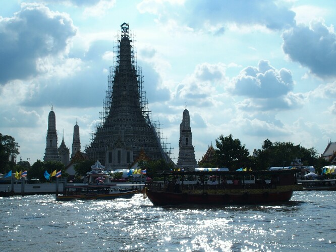 Then via little India (not seeing much of it, getting tired anyway of the crowds)  back to the ferry who takes me up again to Banglampoo where my hostel is. As it’s getting dark now, the ferry ride is especially nice with the lights getting on. Some dinner on my way home before I hope to get sleep. I am tired but it’s Saturday night and the bars are having competition about who plays the loudest (live) music until 3am so I am not sleeping much at all.