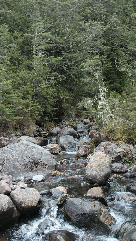 There are more hills to climb and rivers or empty riverbeds to cross this morning before the trail leads into alpine forest and through several beautiful rivers and a gorge.