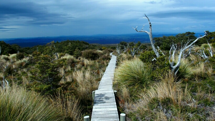 Day 43. Rangipo Hut – Ohakune. 21km. Everything can change in a minute. First, I don’t want to miss the sunrise from the hut. Second, we know bad weather is coming and the morning will be better, too heavy rain could mean we cannot cross the river. Two reasons to get up at 5am and prepare my breakfast outside with the view of the slow sunrise. Just before 6am I already leave. It should be 5-6h to the next hut and 4h more to the hut I plan to stay at. There are dark clouds behind me and it’s windy but not too bad.