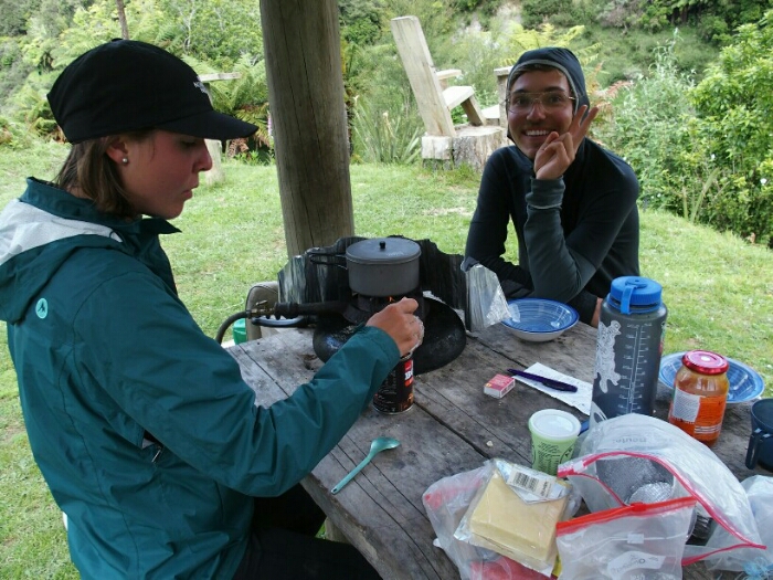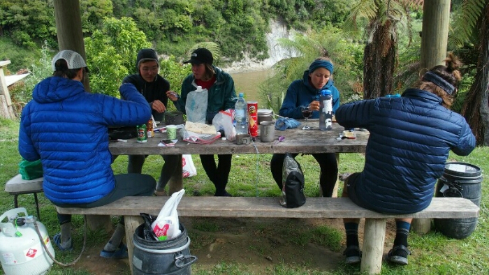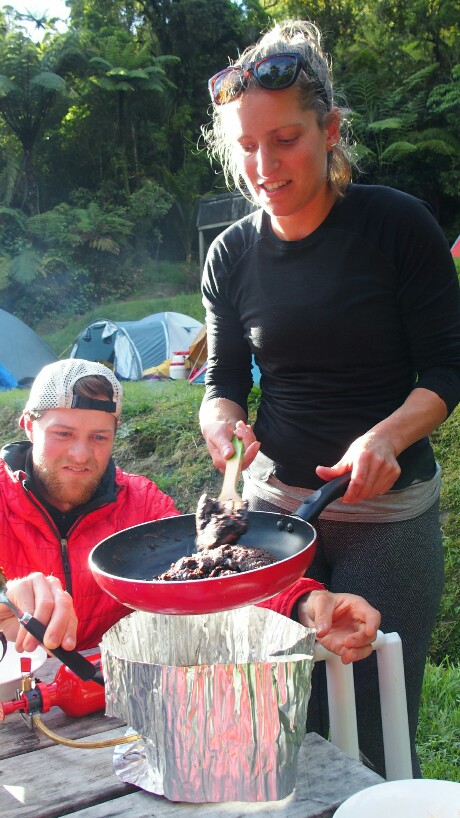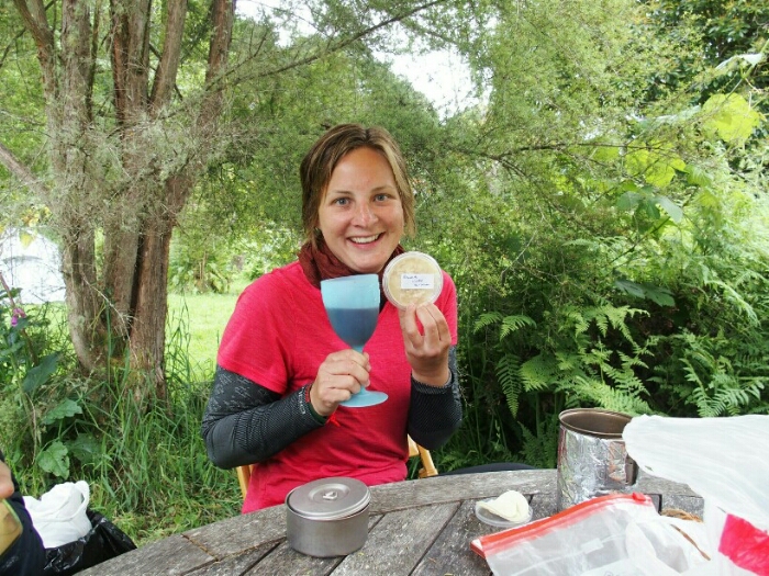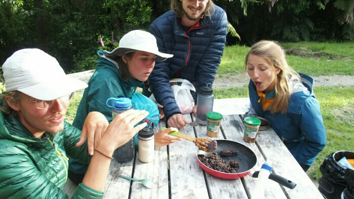 Best of all, Alex and Michaela are baking brownies in their pan and share this perfect dessert with us. For the first time I feel really full and I am so happy about the day I could share with so many nice people. I know now I made the right choice hurrying up and getting on the Whanganui river journey with my Canadians. I even have a kind of trail name now, Brad calls me Queen B 😉