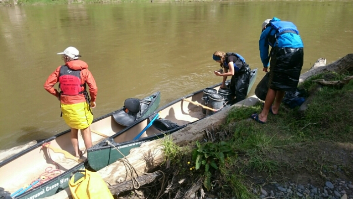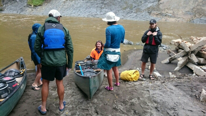 What a great night in a hut, everyone was so silent and had a long sleep in. I can’t even remember when was the last time I didn’t wake up and felt like I need to get going. But today the canoes won’t be delivered before 10-10.30am so I have all the time in the world. I just stay in bed reading until 7.30am. The sun is back and so I do some exercises for my back and feet and stretching outside in the morning sun. Then a slow breakfast and packing up my stuff to join the Canadians in the cafe. I even have time for some WiFi session and calling my parents before the canoes arrive. In between its again pouring rain, but we hide beneath the shelter to put all our gear inside the barrels.