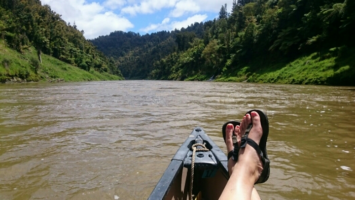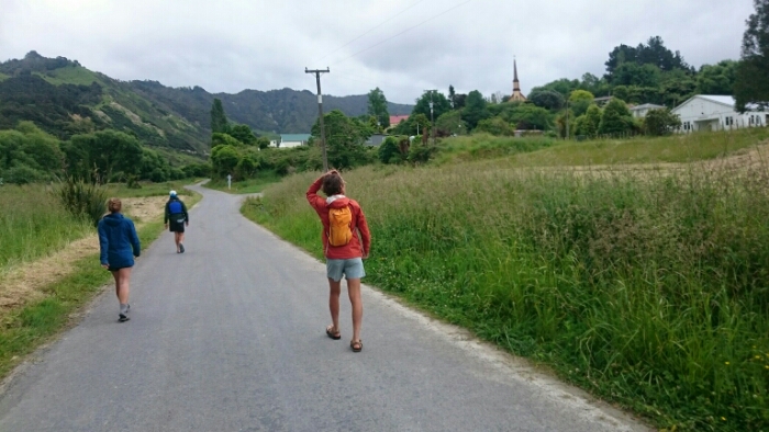 We go explore a sidearm which is so narrow and beautiful before Alex and Michaela catch up on us. Soon we are already in Pipiriki where we have lunch followed by a coffee in a small shop. We wave goodbye to Alex and Michaela, who as all others are handing back their boats here. It’s just the TA hikers who get to continue to Whanganui by boat. Next stop is in Jerusalem where we visit the church and the (empty) convent.