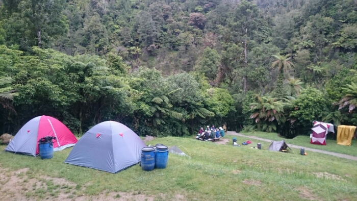 Then it’s only an hour further to our campsite. While the DOC campsite Tieke Kinga is expensive, our Canoe company Taumarunui Canoe advised we should camp just opposite on private land for just 10$ including a hot shower. I am not feeling very well, somehow angry, I am not sure if this whole boat thing is something for me. I guess 2 days would have been enough for me. The shower is not working but we are the only ones on the campsite and have plenty of space to stay and shelter and gas. Everyone is going food crazy again, eating so much, drinking vine, eating more and more, playing cards, drinking coffee, chatting, relaxing, enjoying the view and eating more chocolate. I am amazed that other people can actually eat more than myself – but they also could buy more food. I am worried though how it will be to go back to leas food after these few days of eating like crazy but without moving that much. Let’s see!