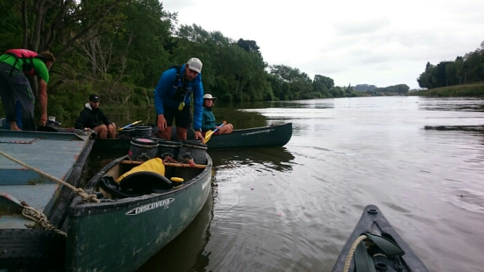 Start is at 7.30am carrying again all the heavy barrels back down to the river and tying them well up. My least favourite part of canoeing. Then it’s paddling and singing and talking until we get to a cafe which has a landing!