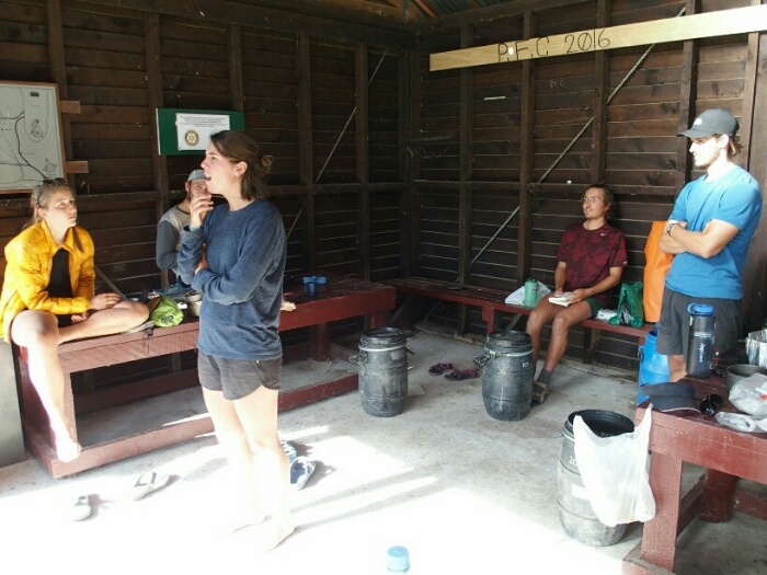 Eventually we arrive at the campsite, Robin and Chloé, René and the two other Canadians are already there! We carry everything up the hill again to a rather nice campground with a big shelter, today we need it to hide from the sun. It’s 5pm but we cook an early dinner and go to bed soon as we are still tired from our party yesterday (at least I am!).