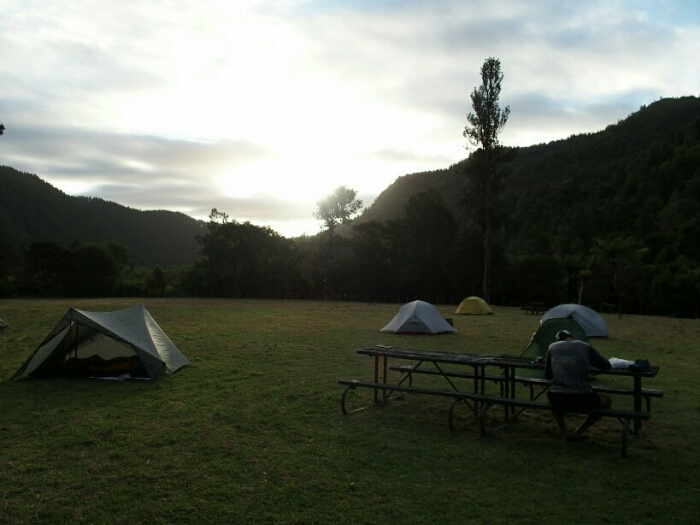Our initial plan was to walk the remaining 4km into town and stay in the YHA. As it’s fully booked we rather decide to share a cabin here instead of a noisy busy YHA.