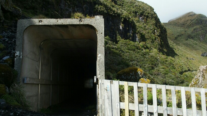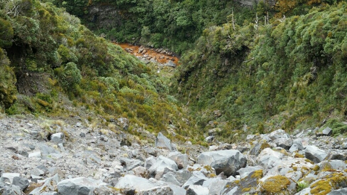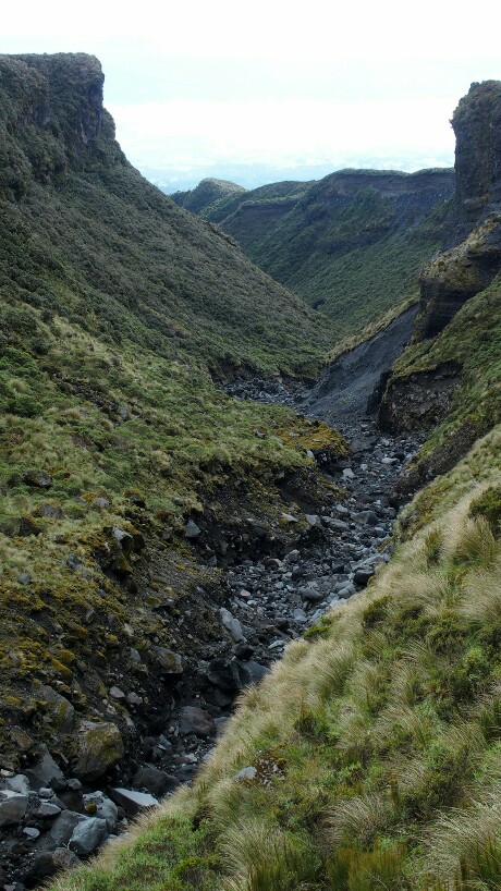 The Stratford Plateau is basically the end of a road with toilets. From there I can already see the Manganui lodge. It’s a beautiful hike up there through a tunnel and empty river bed. When I get there I can even see a ski lift next to the private empty lodge.