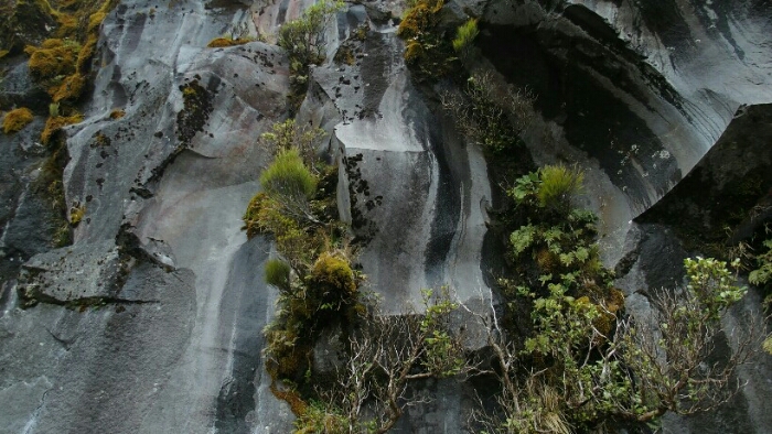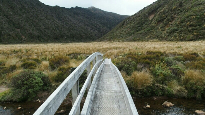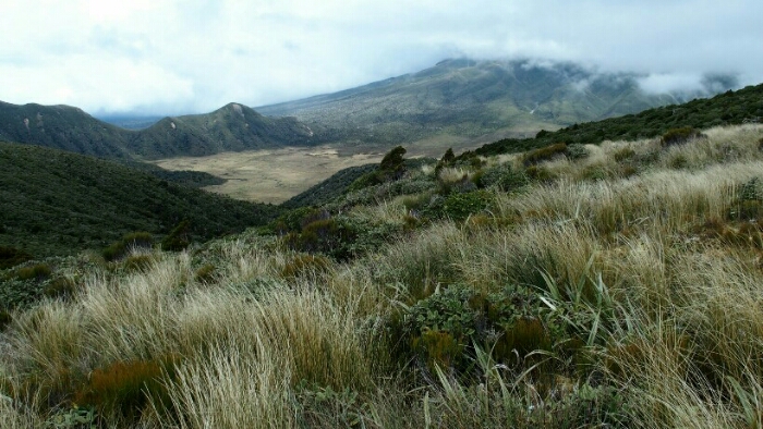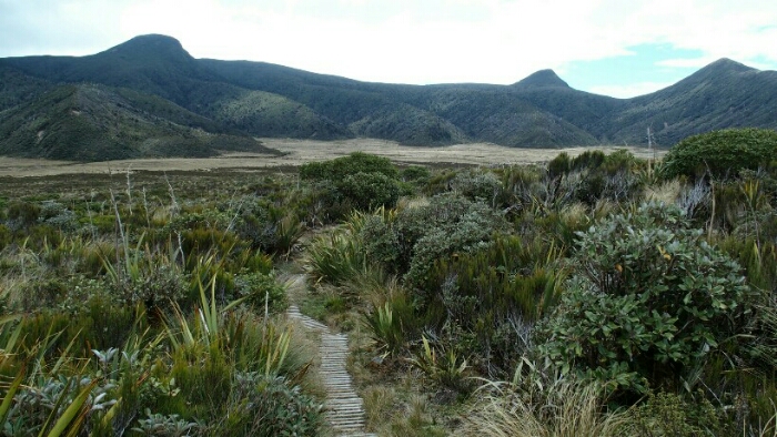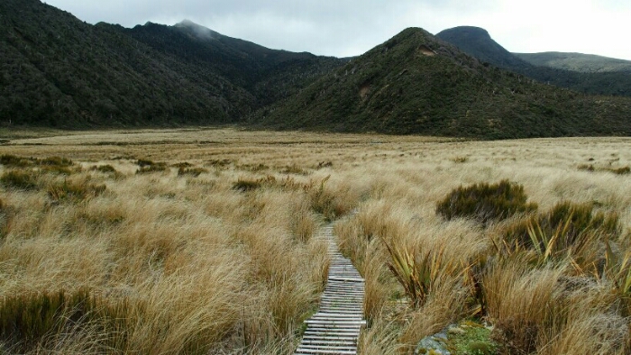I reach Holy Hut at 12.30pm and enjoy a nice lunch even preparing a big cup of tea. The ranger told me yesterday I should stay at this hut today but it’s still early. The next hut on Around the Mountain is another 5h30 though. Plus the two German girls told me that if the sky is clear you get an amazing view from the small lakes close to Pouakai in the morning. They showed me amazing pics. Taranaki is still covered in clouds and I doubt it will clear up, but I decide anyway to walk to the Pouakai Hut. It’s 2h30 from Holy Hut and tomorrow I would either have to hike back here to continue the Around the Mountain or I could decide to change trails and continue on the Pouakai track instead. I will just take my decision depending on the weather, it’s supposed to become rainy and I don’t want to continue my side trip in very bad weather. I am OK with bad weather on the Te Araroa but not for the side trips I do to enjoy a special place.