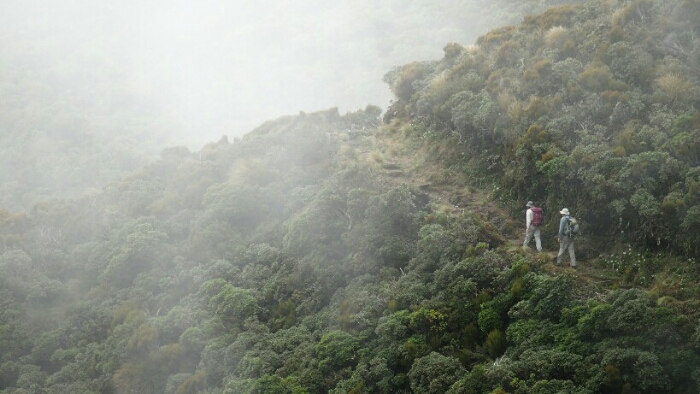 I slept very well and wake up at 5.45am to the voice of one of the boys asking where his daddy is. I am getting up and have a nice breakfast before starting at 6.30am. It’s pretty cloudy outside as I hike back part of the trail I came down yesterday. At an intersection I turn towards the Stratford Plateau. It’s a nice and easy hike slightly uphill. The sky clears up from time to time for some views on the valley.