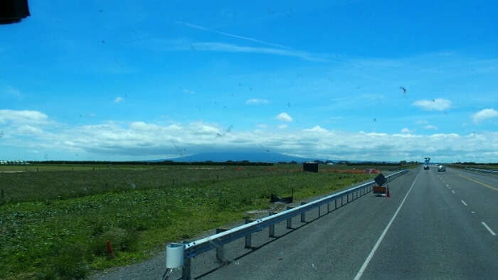 But now it’s time to say goodbye and give a big hug to all my five favourite Canadians. They will continue the trail later today but I really want to go to Mount Taranaki. I make a stop at the post office to send some Christmas gifts to my family before walking to the highway. A nice Kiwi sees me walking and gets out of the car to my side of the road, offering to take me a bit further out of town where I can more easily hitchhike. How nice! Then it’s 10-15 minutes of smiling and putting my thumb up before a truck driver stops. He is going to New Plymouth and can easily drop me off in Stratford. How lucky I am again, there’s just a 10 minutes stop on the way when he has to get his load onto his truck – his other truck broke down yesterday so he got a new one to take up his load of cement.