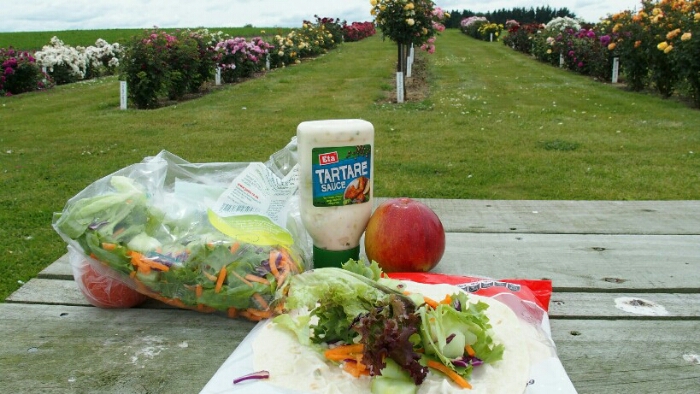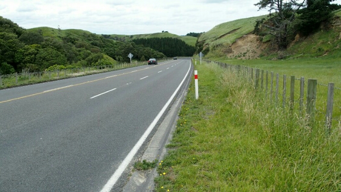I take my time this morning. Tea, yoghurt with banana, coffee, tomatoe with feta. At 9am I say goodbye to Liz who is going to New Plymouth today to visit a friend. For me it’s going to be endless roads. Walking through Whanganui is nice but once I get to highway 3 I have to walk on the shoulder taking extreme care. And for 19km!!! A tough one for my intention of hiking it all. But then look who’s coming! Lindsey and Alison, the elderly Kiwi hikers I last saw in the Ratea rainforest. So good to see them again, although talking on a highway isn’t easy. They have been invited by Murray, a DOC volunteer who hosted the John Cullen campsite during our Canoe trip, to stop for tea when they are coming through. They take me and Murray remembers also me and the Canadians. We get delicious biscuits and coffee and have a nice chat. But plenty of more road hiking ahead so we have to continue. Time is moving quicker when chatting with Alison, stopping every time a truck passes. We get to a wonderful rose garden out of nowhere on the highway and stop for lunch, it’s already 1pm.