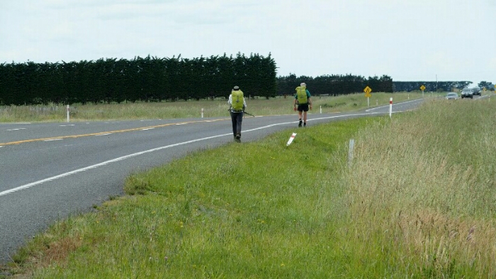 Then more endless highway, I speed up to get done with it, leaving Alison and Lindsey behind. We will catch up at the campsite. Then the intersection to the beach. Finally away from the highway although still long 8km to go on tarmac. My feet hurt, the Keen shoes are great for forest or mountains but not roadwalking.