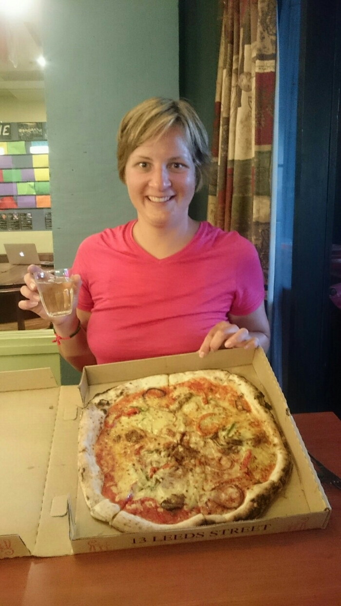 For dinner it’s pizza from Pizza Pomodoro, recommended by my Canadians Matt and Quinn. While we wait for the pizza we walk around a bit further, there are so many cool bars and great restaurants around! We enjoy the pizza back in the hostel together with some vine, delicious!
