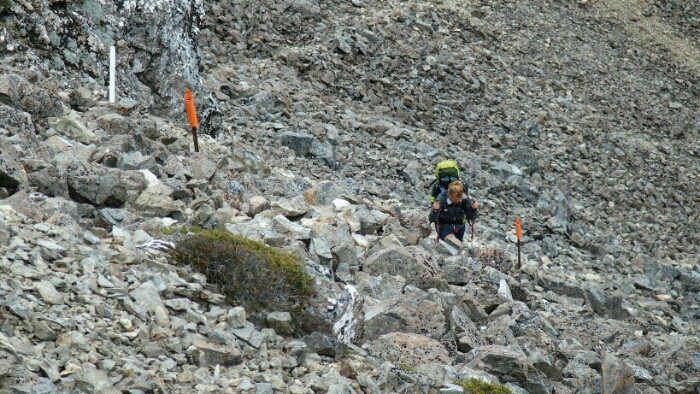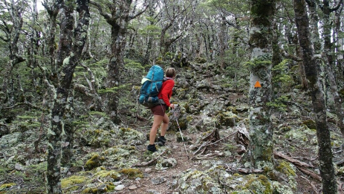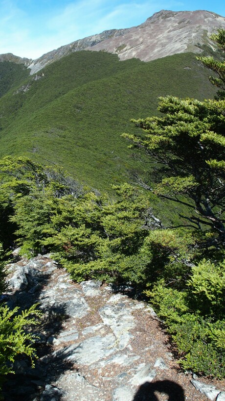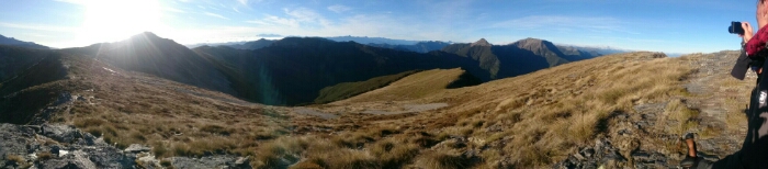 There is some scrambling and some nice little rocks on our way but nothing too bad. At 10.15am we are already at the intersection to Old Man hut (but not going down a few hundred metres).
