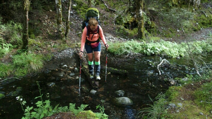 Over the swingbridge and all the way along the river we get back into a forest section. It’s a pretty easy hiking though, we can even chat a lot while we usually hike without talking at all. I have still some problems to adjust to hiking with somebody else – although I couldn’t be happier to have such a good friend with me. On my own I would just decide in the morning to go early (or not) and making long days as I want. Now there’s someone else without all the experience I gained in the last few months. A long day for Peggy is not long day for me and while my body might appreciate the rest (and still complaining about the heavy backpack), I can also feel my longing to always continue further and further, making really long days and distance. It’s just what my body is used to doing and wants now. So I have to learn to accept a different pace – but in exchange enjoy laughing and talking with Peggy. It’s wonderful to be hiking with a such a good friend, share the adventure, the great moments and the misery.