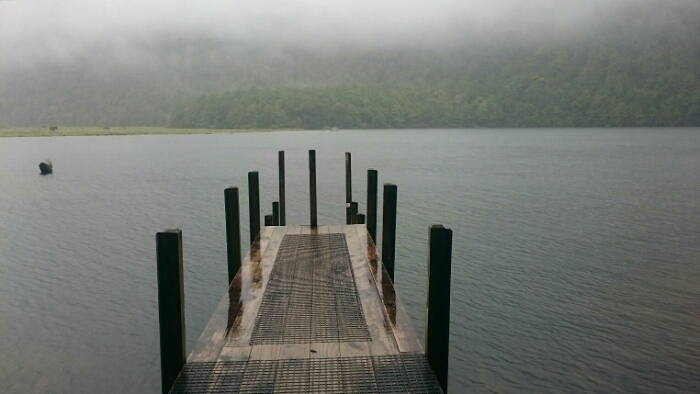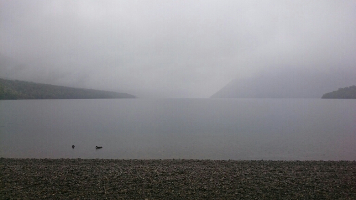 It’s raining as we wake up and we have a lazy start at 9am. Lake Rotoiti is covered in clouds so we can’t see much except for white and grey.