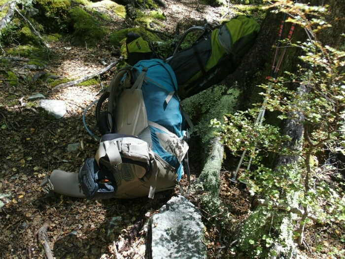 Then another similar hike along the river in the forest, after not even one hour we are at the Travers Falls (leaving our packs up there before climbing down some 80m). The falls are impressive as there’s so much water pouring down!